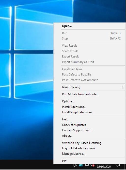 The application is displayed in system tray but right click doesn't work on it