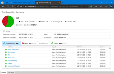 I have "Activate after test run" checked. The log is getting created because I can open it in TestComplete and I can export it in TestExecute. I have IE compatibility turned on in Edge.