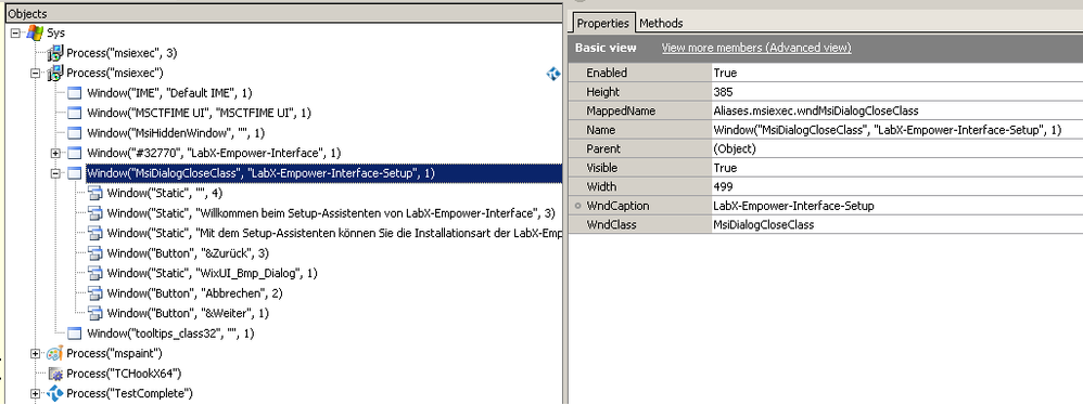 I'm creating a installer using Visual Studio and WiX. Testing is performed with TestComplete 12.30.1651.7 on Windows 7.