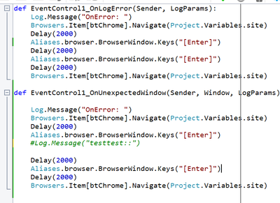 As mentioned in OnUnexpectedWindow Event, "The OnUnexpectedWindow event does not work for windowless objects. That is, if an unexpected window is a windowless object (for example, a modal window implemented in a web application with a div element) the OnUnexpectedWindow event does not occur. For more information, see Handling Unexpected Windows."