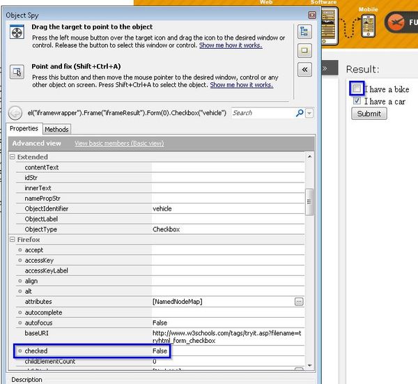 For the check Boxes in our application there is no such property as "Checked" or "cbChecked".