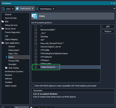 This should then expose the controls to TestComplete - in this example, all the buttons are exposed in Notepad++ Toolbar.