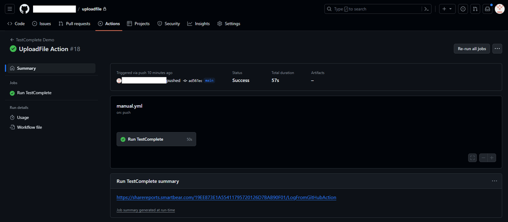 The Batch file which was created using the support documents, works fine when executed manually on the Virtual Machine, it launches TestComplete and executes GUI test and generates report. But when it is executed with GitHub actions, it hangs indefinitely (refer to Admin-mode and GitHub-execution screenshot) and should be cancelled. So I am stuck at this point because debugging is difficult, as there is no specific error message appears during or after the execution.