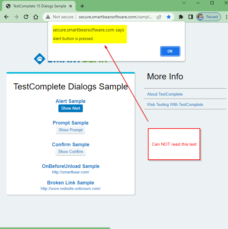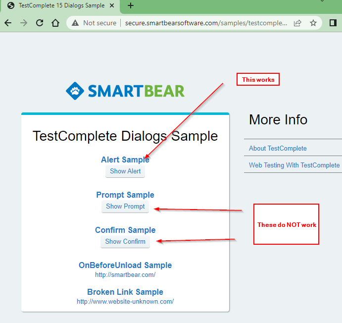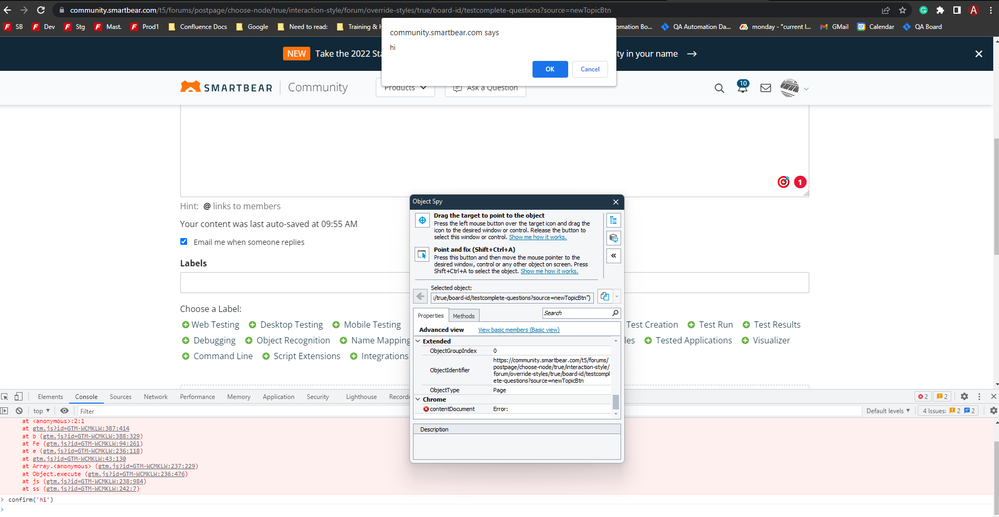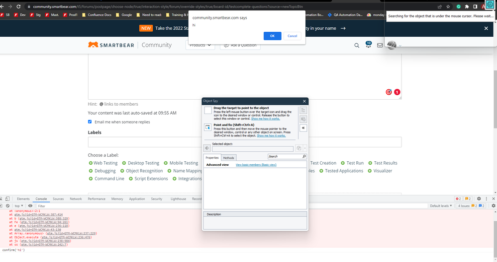 Is anyone else experiencing an issue with TC not recognizing the 'Confirm' pop-up messages in web tests? It worked fine before the last several updates, and I just noticed after revisiting some tests that interacted with these pop-ups. It doesn't seem to be able to recognize the pop-up itself and falls back to identifying the content underneath it after it freezes up for a long moment. Is this something that I should email to support directly? Thank you.