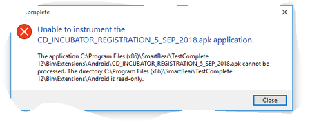 Thus you need to put your .apk file to some custom folder outside of <ProgramFiles> ones.