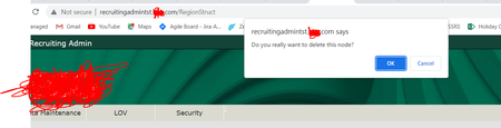 Hi, In my application, when i click on delete button a browser confirmation pop up is displayed with Ok and Cancel buttons however I am not able to select either ok otr cancel options on the pop up....