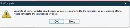 I want to update TestComplete to latest version. Currently i am on 15.40.421 .When we go to 'Help' -> 'Check Updates' it is giving error    How can i update to latest version?