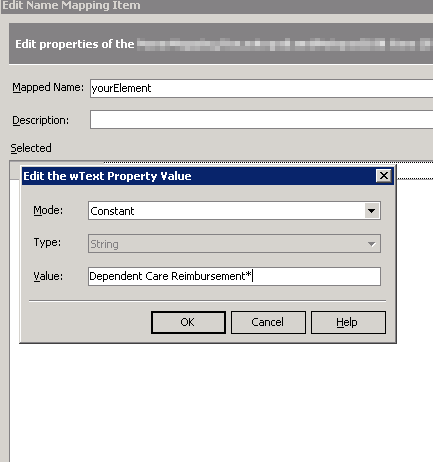 At this point I'm only concerned with "Dependent Care Reimbursement" and the wild card. If someone can please tell me the proper syntax for using a wildcard in place of the actual dollar amount for now I would really appreciate it.
