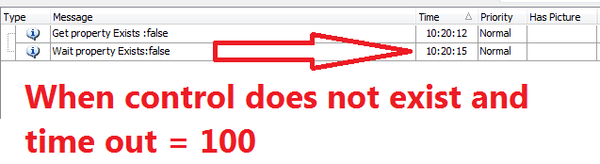 I'm using "WaitProperty" action with "Exists" property and timeout = 0 to know control is exist or not immediately. However, TestCompelete always return false when we let timeout = 0 although "Exists" property of control is true.