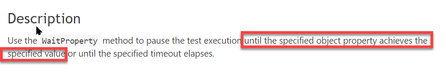 I use WaitProperty and WaitWindow regularly in scripts and haven't seen that problem. Is there a chance it's not finding the button for some reason? Maybe the identification properties on your button?