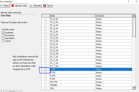 On clicking any of the cell it active the whole row .On clicking P-270 it highlight the row as it display in the picture. But I cannot spy the checkbox icon so not able to click directly on it using click command .What is that operation you are talking about