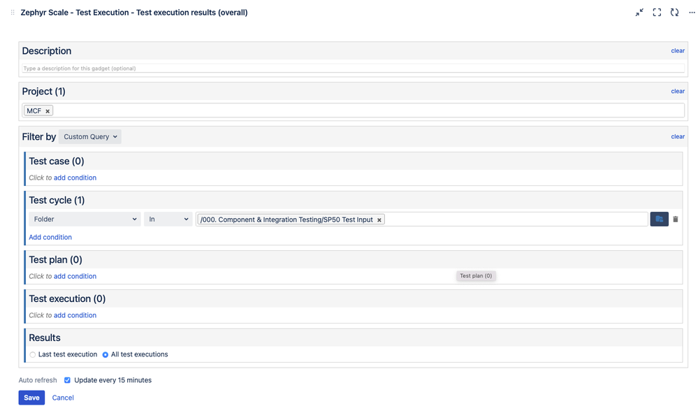 Dashboard custom query - can't select or manually enter test cycle folder
