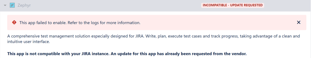 We recently updated to Jira 11.1.1 and Zephyr 11.3.0-jira10. This broke our Zephyr plug in. This is the error message we're getting: