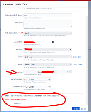 Hi, I'm trying to create a 'Automation Task', but I'm always receiving this error message. Problem: A test automation task can not be created, because the mandatory field 'Assignee' (it i...