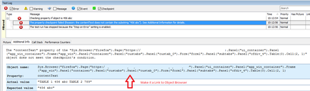 Yes in keyword tests but I'm calling the property checkpoint method in a script routine, so when I click on the error, it'll go the script aqObject.CheckProperty line and there is no way to the Object Browser.