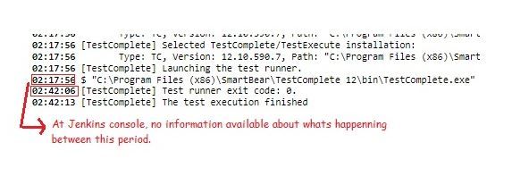 Advantage: We do not want to login to TestComplete box to know what's happening. Rather the information in the jenkins console is more than enough.