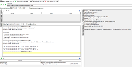 This is my first post, first impassable issue I have run into with soap ng so far. I am testing a batch upload service for work and I have used fiddler for a sanity check before trying to create a regression suite for the service with soap ng. The sanity check through fiddler works fine, but the exact same test through soap ng is failing. The only difference between the two that I can see is the content-length is larger with soap ng. The content-length for this service is important and the request through fiddler will fail if it is not correct. I have tried to manually specify the content-length in soap ng but the request instantly fails when I do this, it looks like it doesn't even try to connect to the endpoint at all. I get back "<missing raw response data>" when manually specifying the content-length. At this point I am thinking the content-length is the culprit. I will post screenshots of the two applicatons with the tests loaded. If anyone has experience using multipart content types with boundaries and soap ng, please advise how you have gotten your tests to work. The fiddler setup is working, I copied that as close as possible to soap ng which is failing. fiddler content-length = 616 soap ng content-length = 757 (where is the extra length coming from?) SOAP NG REQUEST FIDDLER REQUEST7.1KViews0likes3Comments