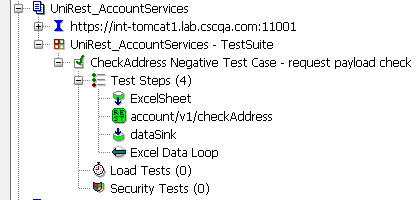 I have been trying to capture the request and response payloads of a RESTful webservice in the SOAP-UI test runs, via. the use of DataSink. In order to visualize, the set up is as below: Properties in the DataSink (as Subreport) have also been set as seen below : Next, I created a subReport named it UniRestService. Below is the code : SubReport Name: UniRestService ReportType: TestCase Scope: Project DataSource: Data Sink <jasperReport xsi:schemaLocation="http://jasperreports.sourceforge.net/jasperreports http://jasperreports.sourceforge.net/xsd/jasperreport.xsd" name="report name" language="groovy" pageWidth="535" pageHeight="842" columnWidth="535" leftMargin="0" rightMargin="0" topMargin="0" bottomMargin="0" xmlns="http://jasperreports.sourceforge.net/jasperreports" xmlns:xsi="http://www.w3.org/2001/XMLSchema-instance"> <template>"../../styles.jrtx"</template> <field name="sessionId" class="java.lang.String"/> <field name="request" class="java.lang.String"/> <field name="response" class="java.lang.String"/> <columnHeader> <band height="37"> <staticText> <reportElement style="SmallHeader" x="0" y="0" width="535" height="34"/> <textElement textAlignment="Left" verticalAlignment="Middle"> <font size="14" isBold="true" isUnderline="true"/> </textElement> <text>API Execution Details</text> </staticText> </band> </columnHeader> <detail> <band height="120"> <staticText> <reportElement x="0" y="0" width="67" height="20"/> <textElement> <font isBold="true" isUnderline="true"/> </textElement> <text>Session ID</text> </staticText> <textField isStretchWithOverflow="true"> <reportElement x="67" y="0" width="100" height="20"/> <textFieldExpression>$F{sessionId}</textFieldExpression> </textField> <staticText> <reportElement x="0" y="20" width="67" height="20"/> <textElement> <font isBold="true" isUnderline="true"/> </textElement> <text>Request :</text> </staticText> <textField isStretchWithOverflow="true"> <reportElement x="67" y="20" width="468" height="20"/> <textFieldExpression>$F{request}</textFieldExpression> </textField> <staticText> <reportElement x="0" y="40" width="67" height="20"/> <textElement> <font isBold="true" isUnderline="true"/> </textElement> <text>Response:</text> </staticText> <textField isStretchWithOverflow="true"> <reportElement x="67" y="40" width="468" height="20"/> <textFieldExpression>$F{response}</textFieldExpression> </textField> </band> </detail> </jasperReport> Next, I created the the main report named : test, Below is the configuration screenshot: And the correponding code is below : <jasperReport xsi:schemaLocation="http://jasperreports.sourceforge.net/jasperreports http://jasperreports.sourceforge.net/xsd/jasperreport.xsd" name="ReportTemplate" language="groovy" pageWidth="595" pageHeight="842" columnWidth="555" leftMargin="20" rightMargin="20" topMargin="30" bottomMargin="30" xmlns="http://jasperreports.sourceforge.net/jasperreports" xmlns:xsi="http://www.w3.org/2001/XMLSchema-instance"> <template>"../../styles.jrtx"</template> <!--FIELDS & PARAMS--> <title> <band height="70"> <textField> <reportElement x="159" y="13" width="229" height="42"/> <textElement> <font size="26"/> </textElement> <textFieldExpression class="java.lang.String">$F{name} + " Report"</textFieldExpression> </textField> </band> </title> <pageHeader> <band/> </pageHeader> <detail> <band height="122"> <!--SUBREPORTS UNDER HERE--> <subreport isUsingCache="true"> <reportElement positionType="Float" isPrintRepeatedValues="false" x="0" y="0" width="500" height="30"/> <dataSourceExpression><![CDATA[$P{dataSink}]]></dataSourceExpression> <subreportExpression><![CDATA["subreport:UniRestService"]]></subreportExpression> </subreport> </band> </detail> </jasperReport> I have also tried with the the following dataSourceExpression in the code snippet above : <dataSourceExpression><$P{dataSink}></dataSourceExpression> <subreportExpression><"subreport:UniRestService"></subreportExpression> In either cases, I get the following error, from the error.log. Sun Nov 01 10:44:10 EST 2015:ERROR:net.sf.jasperreports.engine.design.JRValidationException: Report design not valid : 1. Parameter not found : dataSink net.sf.jasperreports.engine.design.JRValidationException: Report design not valid : 1. Parameter not found : dataSink at net.sf.jasperreports.engine.design.JRAbstractCompiler.verifyDesign(JRAbstractCompiler.java:258) at net.sf.jasperreports.engine.design.JRAbstractCompiler.compileReport(JRAbstractCompiler.java:140) at net.sf.jasperreports.engine.JasperCompileManager.compileReport(JasperCompileManager.java:215) at com.eviware.soapui.reporting.engine.jasper.GenerateJasperReport.createReport(SourceFile:409) at com.eviware.soapui.reporting.engine.jasper.GenerateJasperReport$ReportFillWorker.construct(SourceFile:382) at com.eviware.soapui.support.swing.SwingWorkerDelegator.construct(SwingWorkerDelegator.java:46) at com.eviware.soapui.support.swing.SwingWorker$2.run(SwingWorker.java:131) at java.lang.Thread.run(Unknown Source) Any help is much appreciated here. Thanks in advance.Solved3.5KViews0likes1CommentDataSink SubReport