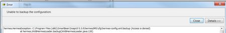 This occurs when attempting to create a new session, three similar errors occurred after clicking on apply after providing a name for my session. Running Hermes on a Windows 7 machine that I have admin rights too. The first line from each error are below: hermes.HermesException: C:\Program Files (x86)\SmartBear\SoapUI-5.3.0\hermesJMS\cfg\hermes-config.xml.backup (Access is denied) hermes.HermesException: C:\Program Files (x86)\SmartBear\SoapUI-5.3.0\hermesJMS\cfg\hermes-config.xml (Access is denied) hermes.HermesException: C:\Program Files (x86)\SmartBear\SoapUI-5.3.0\hermesJMS\cfg\hermes-config.xml.backup (The system cannot find the file specified) Screen shots of errors are found below:1.2KViews0likes0CommentsHermes JMS Issue