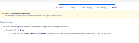 What is the format to add owner name in the field. I get the following warning message saying Cannot add value Madhu Pishke to field Owner - Invalid user value. User fields should match the key of an existing Jira user. E.g. "john.doe". What is the correct format to do so?Solved1.9KViews0likes9CommentsHow to set the status of a test using the Zephyr Scale api