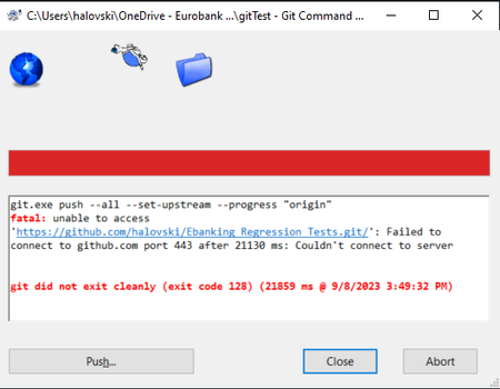 I have created manual test cases in Azure devops Test Plan. I have automated the manual test case functionality using ReadyAPI. Now i want to link the Azure Test Plan test cases while running the ReadyAPI tests via the Azure pieplines. Is it possible to do so ? I am using the Azure devops extension named "ReadyAPI Test for Azure Devops" and "Publish Test Results" in my pipeline.244Views1like1CommentCan't push to GitHub from TestComplete (exit code 128)