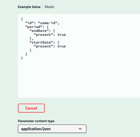 I am using OpenAPI and openapi-generator-maven-plugin with Spring Boot. I'm trying to create an example object in my response. I've followed the suggestions of several different web pages, especially this one: https://swagger.io/docs/specification/adding-examples/ But no matter what I try, I can't get the example data to show up correctly. Here the object that should be in a request: Period: type: object required: - startDate - endDate properties: startDate: type: string format: date nullable: true example: "2021-01-01" endDate: type: string format: date nullable: true example: "2030-01-01" CreateInstancesRequest: type: object required: - id properties: id: $ref: '#/components/schemas/Id' period: allOf: - $ref: '#/components/schemas/Period' But I get not what I want: I expect something like this: { "id": "some-id", "period": { "endDate": "2020-01-01", "startDate": "2022-01-01" } } But maybe I am wrong because generated java code for the Period class: I think present property from actual example came from org.openapitools.jackson.nullable.JsonNullable class. Can you help me, please?Can I pass the floating license as an Maven Argument??