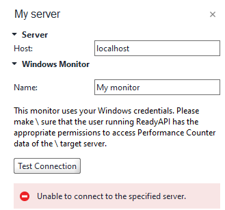 Dear Community We started to you the Load test function in ReadyAPI. We also wanted to monitor the Server. Unfortunately I could add the Server, which is my localhost and test the Connection. I checked in link described prepare steps: Run on windows machine User which execute ReadyAPI is in the administrator group Remote registry service is active I still getting this error: I tried in “Host” field also the ip (127.0.0.1&ip of the host). I also tried with hostname like “localhost” and the actual hostname of the machine and it didn’t worked… can someone help me please.636Views0likes4CommentsHow do I test API in two different environments simultaneously