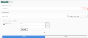 I have the following Openapi document: { "info": { "description": "This document shows strange behavior in swagger ui", "title": "This document shows a strange behavior in swagger ui", "version": "0.0.0" }, "openapi": "3.0.0", "paths": { "/post": { "post": { "description": "Upload multiple files", "requestBody": { "content": { "multipart/form-data": { "schema": { "properties": { "inputResources": { "items": { "type": "string" }, "type": "array" } }, "type": "object" } } }, "description": "Multipart body to upload files" } } }, }, "servers": [ { "url": "https://httpbin.org" } ] } I want to display it with Swagger UI so I created the following HTML page: <script src="https://unpkg.com/swagger-ui-dist@3/swagger-ui-bundle.js"></script> <script src="https://unpkg.com/swagger-ui-dist@3/swagger-ui-standalone-preset.js"> </script> <script> window.onload = function() { const ui = SwaggerUIBundle({ url: "path/to/above/document", validatorUrl : null, dom_id: '#swagger-ui', deepLinking: true, }) window.ui = ui } </script> <div id="swagger-ui"></div> I get a nice display of my request However when I execute it the following multipart body is sent: ------WebKitFormBoundaryzRaOvYA1aX8T4BXu Content-Disposition: form-data; name="inputResources" ewrr,eeee ------WebKitFormBoundaryzRaOvYA1aX8T4BXu-- As you see the strings are just comma-separated which is not a valid way to encode an array of strings in a multipart body. I would expect a part for each string element to be created like that: ------WebKitFormBoundaryzRaOvYA1aX8T4BXu Content-Disposition: form-data; name="inputResources" ewrr ------WebKitFormBoundaryzRaOvYA1aX8T4BXu Content-Disposition: form-data; name="inputResources" eeee ------WebKitFormBoundaryzRaOvYA1aX8T4BXu-- Even worse when I change the format of the inputResources property to binary to send files instead. "inputResources": { "items": { "format": "binary", "type": "string" }, "type": "array" } This changes the multipart body to the following: ------WebKitFormBoundary5OvyKi6BDAuPKnFm Content-Disposition: form-data; name="inputResources" [object File],[object File] ------WebKitFormBoundary5OvyKi6BDAuPKnFm-- Again I would have expected two parts with the respective file's binary content. Am I assuming correctly that Swagger UI simply does not support arrays yet in multipart request bodies? Or did I do something wrong? Kind regards, NeidhartManaging Multiple Auth Methods in Swagger UI
