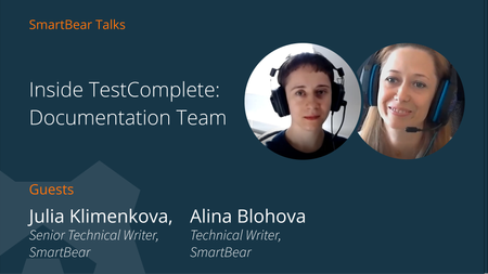 Hi Community! Today, we'd like to introduce the TestComplete Documentation Team to you as part of the Inside TestComplete series. TestComplete documentation is very thorough and precise, this takes a lot of work, surely. So, meet the people who create it - Julia Klimenkova, Senior Technical Writer, and Alina Blohova, Technical Writer. In this interview, they speak about their roles at SmartBear, favourite help articles and the biggest challenges they face when preparing documentation for monthly TestComplete releases. Watch the interview: https://youtu.be/lDnqNYSEXno Julia Klimenkova - Senior Technical Writer for TestComplete Alina Blohova - Technical Writer for TestComplete Timestamps: 00:00 Introduction 00:39 Julia's and Alina's roles at SmartBear 01:59 Alina's background 02:50 Julia's and Alina's favourite help articles 04:09 Julia explains how they deal with big releases 05:01 Alina speaks on workflow changes for monthly TestComplete releases 06:00 A special message for the TestComplete Community Thank you for watching! I hope you enjoyed this video. Feel free to post your questions under this post, in case you have any. You can watch more videos with the TestComplete Team on this page. Don't forget to subscribe to the SmartBear Community Matters blog to get updates about all the great content we post here.1.4KViews7likes0CommentsSmartBear Talks | Meet the TestComplete Developers Team Lead - Stanislav Egorov