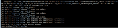 We need the TestExecuteLite run in parallel in our device cloud. the TELite have been the float license for testing. And we have try the steps:https://support.smartbear.com/testexecute/docs/running/cross-platform-tests/run/command-line.html The above steps is for Command Line. but we are failed when we run it in our TELite machine. The error as below: If we are using the help document: https://support.smartbear.com/testexecute/docs/running/cross-platform-tests/run/jenkins/run-tests.html The error as below: So we are not sure what's wrong with it. if we are using testexecute.exe for command will be fine and it's worked. but we are using testexecuteLite.exe for testing will be failed. So anyone have the demo step or help document? Thanks very much.Solved2.4KViews0likes7Comments