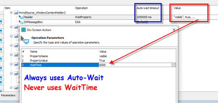I have a Keyword test with an On-Screen Action WaitProperty with a WaitTime value set. On playback, TestComplete never uses this value. Instead, it always uses the Auto-Wait Timeout value. There must be a way to use the WaitProperty value, right? Anybody know how to do this? Thanks!1.3KViews0likes3Comments